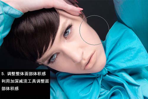 5、调整整体面部体积感,利用加深减淡工具调整面部体积感(见图4)。