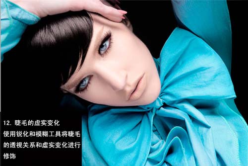 12、睫毛的虚实变化。使用锐化和模糊工具将睫毛的透视关系和虚实变化进行修饰(见图11)。