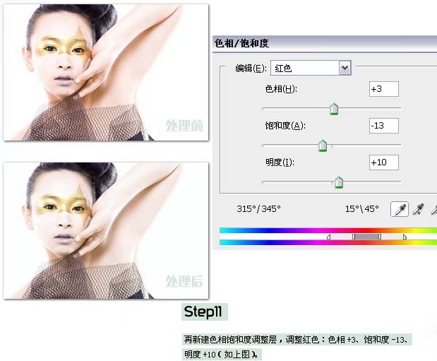 11、新建色相/饱和度调整图层,参数设置如下图。