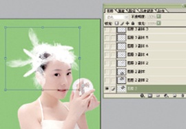 5、将素材拖入画布中,图层模式为滤色,多次复制,并在人物头上适当调整好位置。