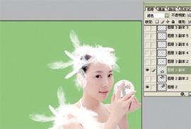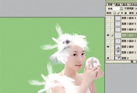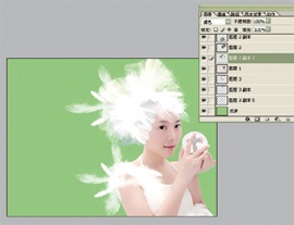 9、继续调整头纱素材和羽毛素材,使这个造型变的更加饱满,如图所示。