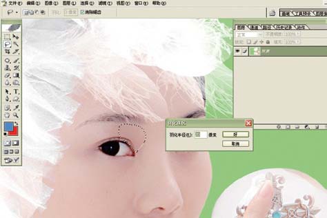 10、合并所有图层,在人物眼皮上做选区,羽化半径为20象素。