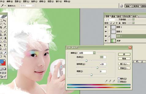 象素,复制选区图层,执行色相/ 饱和度,参数如下: 色相-33、饱和度+39。