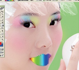 23、在嘴唇选取内拉出渐变色彩,效果如图所示。