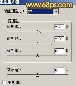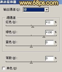 7、创建通道混合器调整图层,参数设置如图13,14,效果如图15。