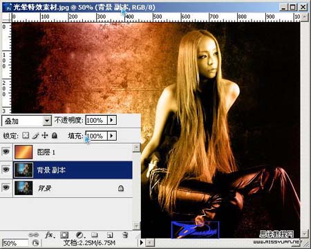五、更改“背景副本”图层的混合模式为“叠加”。