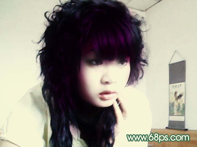6、新建一个图层,前景颜色设置为:#B0077A,然后用画笔工具在头发边缘涂抹,稍微涂一点就可以,然后把图层混合模式改为“正片叠底”,效果如图6。