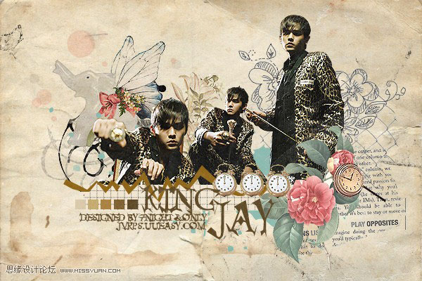 古典签名最重要是色调及一些素材的运用。首先需要找一些古典的素材,如纹理背景,古典小元素等。然后再慢慢溶图及调色,做出自己想要的效果。