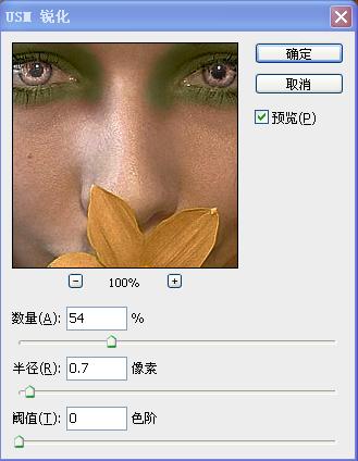 6、执行:滤镜 > 锐化 > USM锐化。再适当的把人物脸上有较大斑点的地方修复一下,完成最终效果。