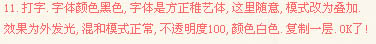 11、选择文字工具打上文字,字体颜色为黑色,字体是方正稚艺体,这里随意,模式改为“叠加”,效果为外发光,混合模式,混合模式“正常”,不透明度为:100%,颜色白色,复制一层,完成最终效果。