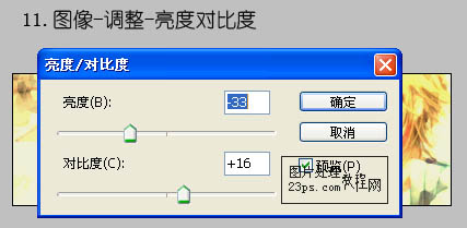11、创建亮度/对比度调整图层,参数设置如下图。