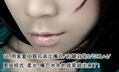 17、用套索工具扣画出嘴巴,右键羽化数值为5,按Ctrl