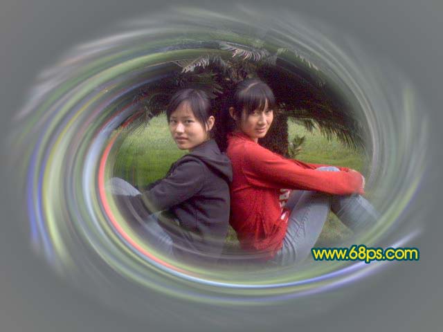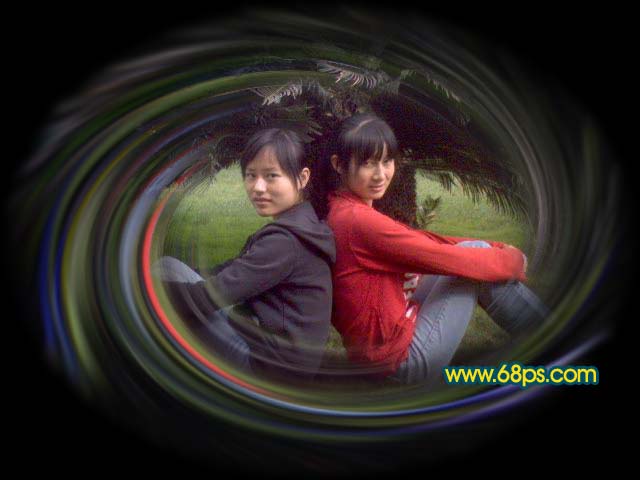 3、执行菜单:滤镜 > 扭曲 > 旋转扭曲,参数设置不变。加上图层蒙版用黑色画笔把人物部分擦出来,效果如图3。