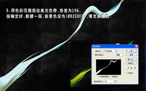 5、打开下图素材,选择菜单:选择 > 色彩范围,数值为196,然后点彩带部分,按确定后新建一层填充颜色:#D2EDF9。