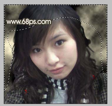 3、选择套索工具勾出图3所示的选区,按Ctrl