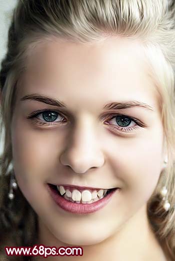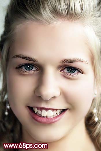 8、新建一个图层盖印图层,选择模糊工具把脸上没有去掉的杂色模糊处理,然后再适当锐化一下,大致效果如图9。