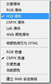 6、下面我们要改变Texture使它更接近皮肤的颜色~选择吸管工具,对皮肤的平均颜色取样~然后打开颜色面板,在右侧猛击菜单按钮,选择Hsb滑块。