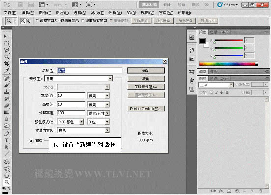 1、运行Photoshop,执行“文件”→“新建”命令,新建一个空白文档。