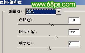 2、创建色相/饱和度调整图层,分别对黄色,和绿色调整参数设置如图