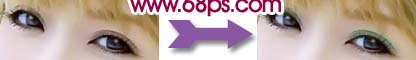5、给眼睛加眼影,新建一个新的图层选择合适大小的笔刷,并将前景色设置为自己喜欢的颜色,在眼皮上开刷,轻轻的刷一下就OK了。高斯模糊2-3个象素,并将混合模式设置为柔光,不透明度自己可以根据感觉来调整: