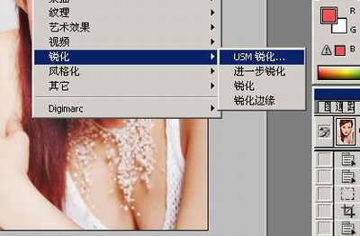 5、选择菜单: 滤镜 > 锐化 > USM锐化