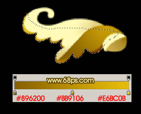 4、在背景图层上面新建一个图层,用钢笔勾出图9所示的选区,拉上渐变色作为阴影。
