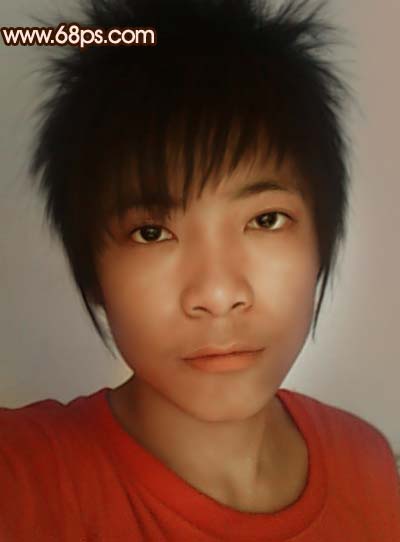 5、新建一个图层,盖印图层,用涂抹工具把人物头发稍微涂一下,如图8。