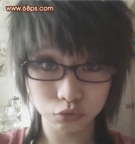 > 模糊 > 高斯模糊,数值为3,确定后加上图层蒙版用白色画笔在人物脸上有杂色的地方涂抹,给人物磨皮,涂的时候注意不要涂五官的轮廓部分。