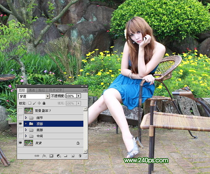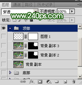 4、把背景图层复制一层,把副本图层移到“顶部”组里面;用钢笔工具勾出顶部需要处理的区域,然后添加图层蒙版,如下图。