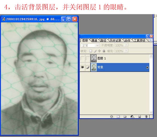 4、击活背景图层,并关闭图层1的眼睛。