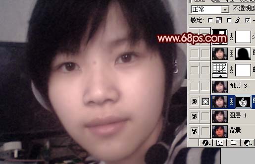 + Alt + Shift + E盖印图层,执行:滤镜 > 模糊 > 高斯模糊,数值为3,确定后按住Alt键加上图层蒙版,然后用白色画笔涂抹人物脸上及皮肤上有杂色的地方,简单的给人物磨皮。