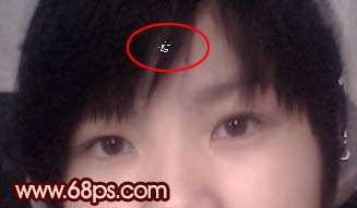 3、新建一个图层,盖印图层,选择涂抹工具,笔刷选择图5所示的杂点较多的笔刷,笔刷透明度为:50%,然后顺着头发涂抹,效果如图6。