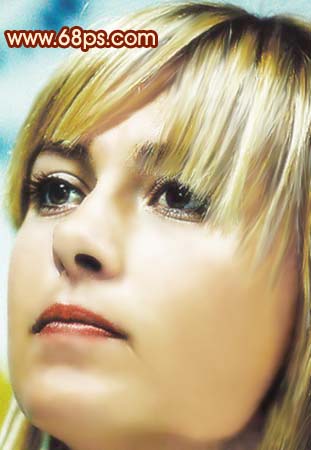 8、新建一个图层,盖印图层,选择涂抹工具,再选择一个点状的画笔,压力40%左右,然后顺着人物的头发涂抹,需要有耐心,效果如图13。