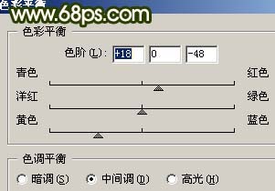 2、创建色彩平衡调整图层,参数设置如图2,效果如图3。
