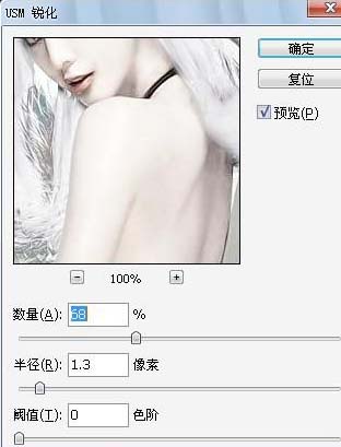 9、效果好了以后,感觉图还不是那么的锐利,好我们再用锐化的滤镜调正下,去掉模糊感,数值根据图来确定。