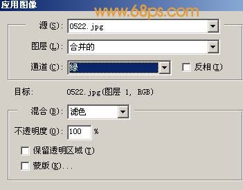 + J复制一层,选择菜单:图像 > 应用图像,参数设置如图1,效果如图2。