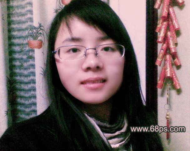 + Alt + Shift + E盖印图层,然后用模糊工具在有杂色的地方涂抹,杂色较多的地方用套索工具勾出来,羽化在模糊处理。这个过程比较费时间。处理后的大致效果如图6。