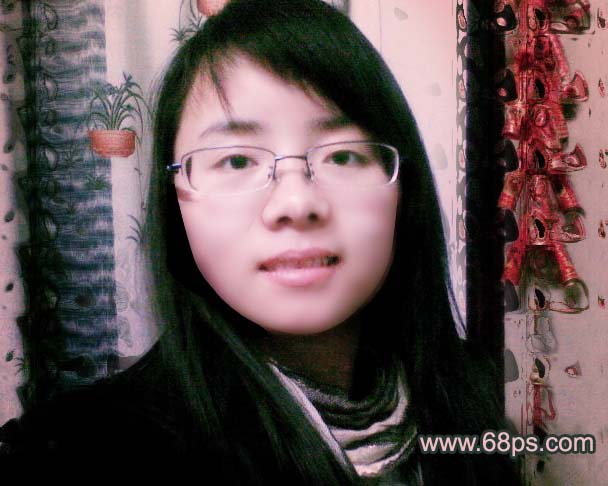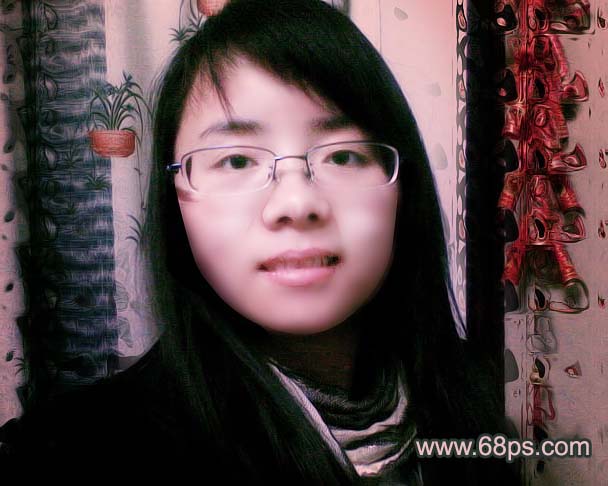 > 扭曲 > 玻璃,参数自定,确定后把图层混合模式改为正片叠底,再加上图层蒙版,用黑色画笔把人物部分擦出来,效果如图8。