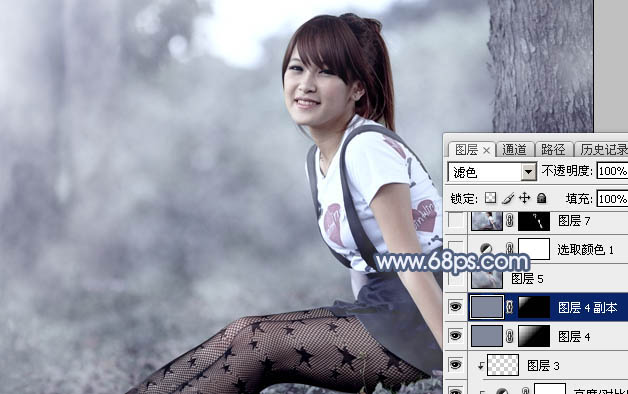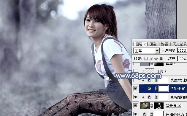 Photoshop打造唯美的中性蓝色外景美女图片(5)
