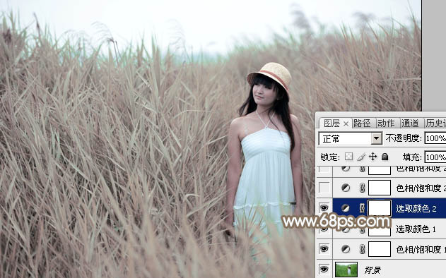 Photoshop给芦苇中的美女加上柔和的古典粉褐色(3)