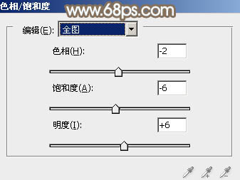 4、创建色相/饱和度调整图层,对全图进行调整,参数及效果如下图。这一步给图片增加中性色。