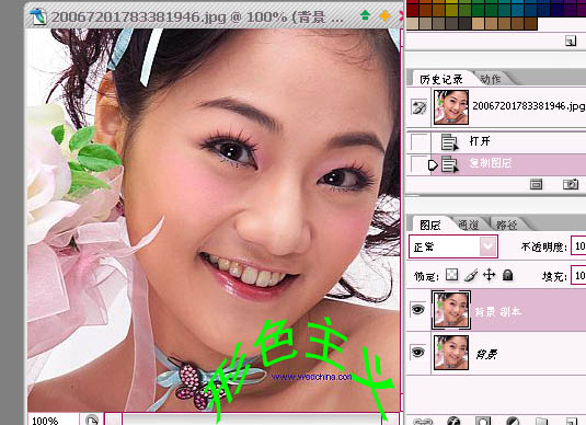 本教程主要思路是先把人物的脸部分的暗色等部分的选区巧妙的在通道里面制作出来,然后只要稍微调下曲线就可以做到非常不错的美容效果,简单又实用。