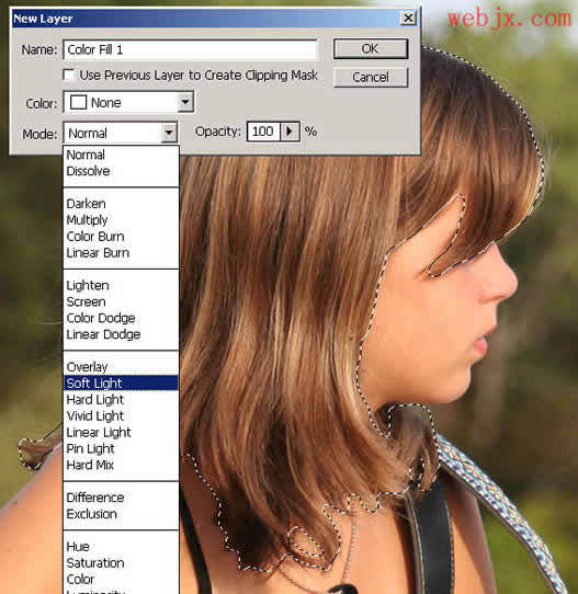 5.新建立一个填充图层(图层->新填充图层->纯色),并把图层混合模式改为“柔光”