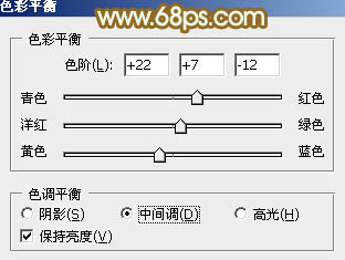 6、创建色彩平衡调整图层,对中间调,高光进行调整,参数设置如图19,20,效果如图21。这一步同样给图片增加橙黄色。