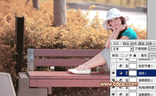 Photoshop给长凳上的美女加上柔美的红褐色(3)
