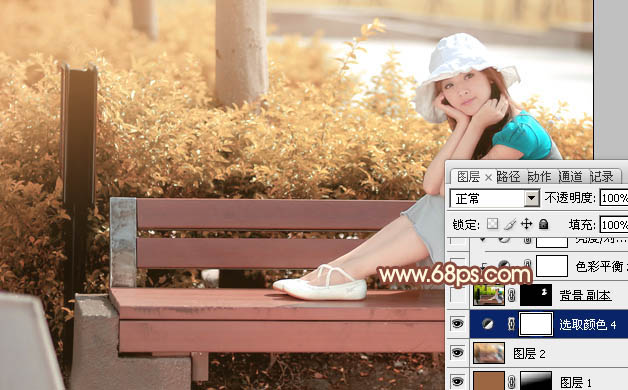 Photoshop给长凳上的美女加上柔美的红褐色(5)