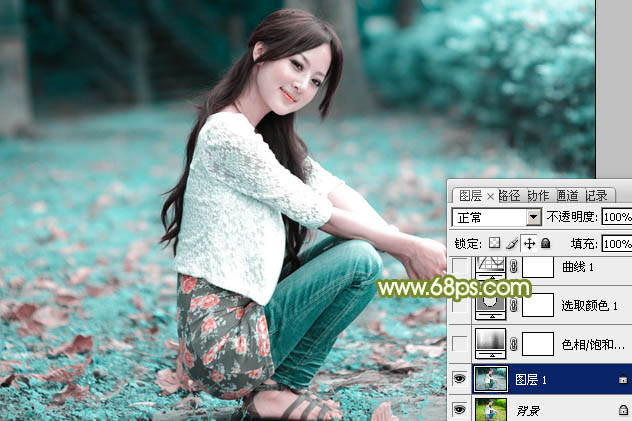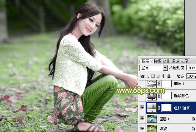 Photoshop给外景美女加上柔美的古典淡绿色(2)
