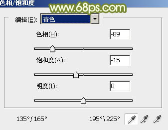 2、创建色相/饱和度调整图层,对青色进行调整,参数及效果如下图。这一步把图片中的青色转为黄绿色。