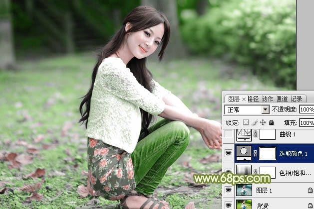 Photoshop给外景美女加上柔美的古典淡绿色(3)