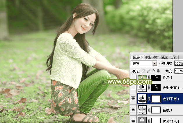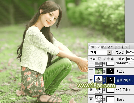 Photoshop给外景美女加上柔美的古典淡绿色(4)